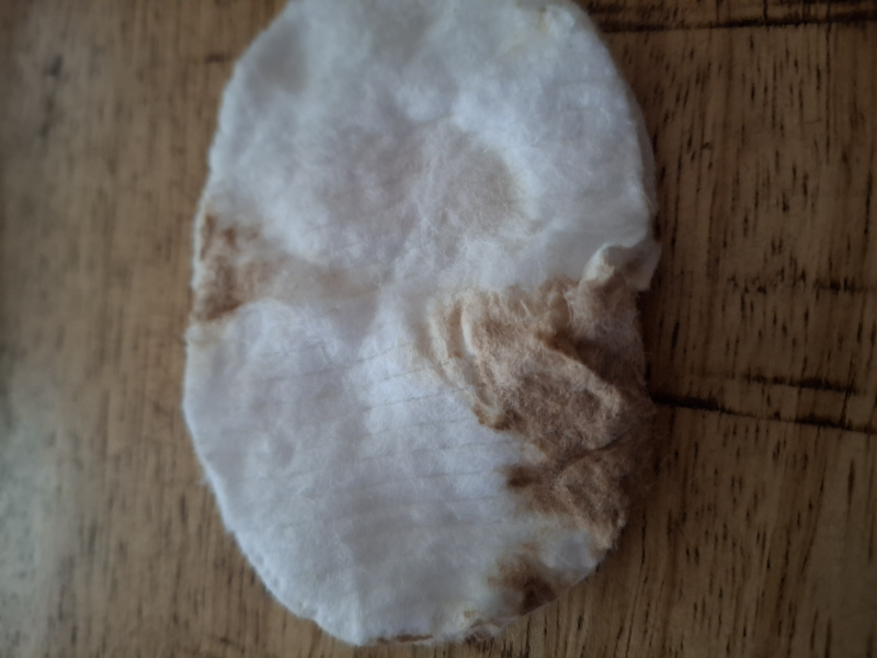 Je kan dit zwarte oorsmeer schoonmaken met een oor reiniger (verkrijgbaar bij ons op de praktijk)